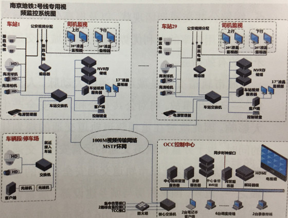 南京地鐵3號線運(yùn)營監(jiān)控接入2500臺監(jiān)控?cái)z像機(jī),是全國第一條全網(wǎng)絡(luò)高清軌道交通視頻監(jiān)控系統(tǒng)。共29個站點(diǎn),平均每站點(diǎn)86臺設(shè)備。站間網(wǎng)絡(luò)通過MSTP環(huán)網(wǎng)連接,環(huán)網(wǎng)鏈路保證了站點(diǎn)連接的可靠性,即使單點(diǎn)鏈路斷裂,環(huán)網(wǎng)變?yōu)殒湢?仍然能夠保證可靠通信。